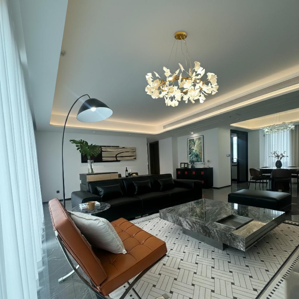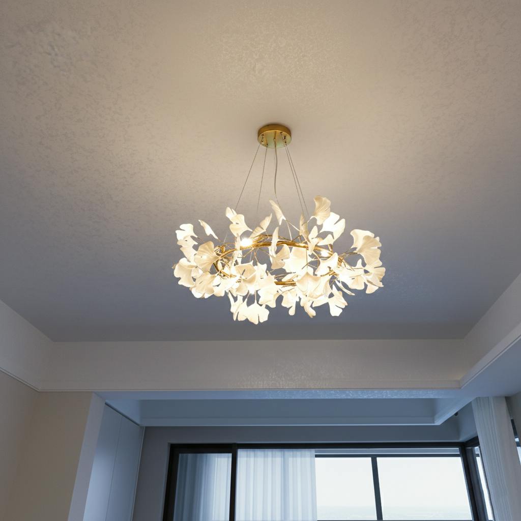 This ceramic ginkgo tree petal chandelier shows its luxurious style in overall design, material, and manufacturing technology. The metal lamp body is covered with exquisite ceramic petals, which reflects the perfect combination of lighting design and natural plants.