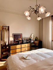 This lamp is adorned with delicate white ceramic roses and exquisite metal leaves, creating an elegant aesthetic. The glass lampshade emits a soft glow, creating a warm and inviting atmosphere.It will become the focal point of your space, transforming any room into a tranquil haven filled with refined taste and romantic ambiance.