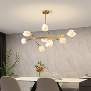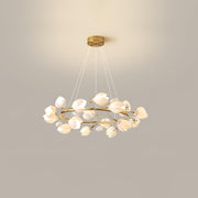 The White Porcelain Magnolia Branch Chandelier gracefully encapsulates the serene beauty of magnolia flowers in full bloom. Each petal is sculpted from pristine white porcelain, exuding an air of purity and tranquility, while the robust metal branches add a contrasting structural elegance. This chandelier doesn't merely illuminate a room; it transforms any space into a haven of peace and refinement.