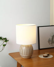 The Terra Stripes Table Lamp is inspired by the natural beauty of earthy textures and geometric patterns. The ceramic base features vertical stripes and accents, creating a sense of organic elegance reminiscent of handmade pottery. Paired with a crisp white drum shade, this lamp perfectly blends rustic charm with modern sophistication, making it the perfect addition to any modern or transitional interior.
