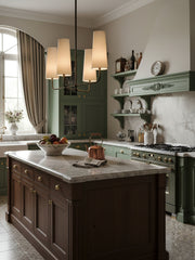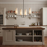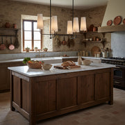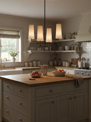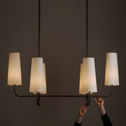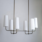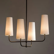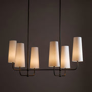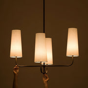 This chandelier will add a captivating ambiance to your home, perfectly blending classic charm with modern sophistication. The lamp features a fabric shade that diffuses a soft and beautiful light. The sturdy brass body ensures durability and showcases elegant design lines.