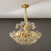 This Crystal Flower Chandelier features a timeless traditional design with a burnished clear leaf and brass finish. Bring a timeless touch to your entryway as the traditional style complements any decor.