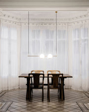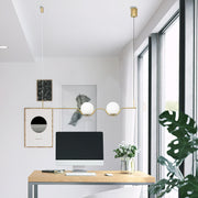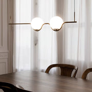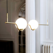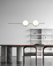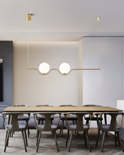 The Lunette Balance Chandelier by Mooiehome brings sculptural poise and modern elegance to any interior. Featuring two luminous glass globes perfectly counterbalanced on a streamlined iron frame, this chandelier captures the beauty of symmetry in motion. The warm gold-toned structure adds a refined touch, making it ideal for dining areas, kitchen islands, or contemporary living spaces. With its minimalist form and soft ambient glow, Lunette transforms lighting into art.