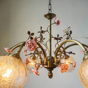 This is a truly exquisite lamp, perfectly blending classic charm with superb craftsmanship. This stunning lamp is not merely a lighting tool, but a symbol of refined taste and romantic ambiance. The chandelier body is crafted from brass, paired with a delicate glass shade; every detail showcases superior quality and timeless style. Its highlight lies in its exquisite design: a delicate pink ceramic rose that creates an elegant and warm atmosphere.