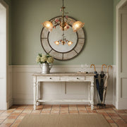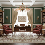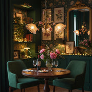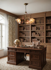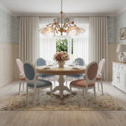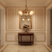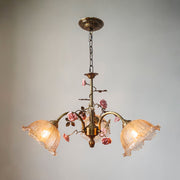 This Victorian Chandelier adds a touch of brightness to your space with its captivating charm. It perfectly blends vintage elegance with romantic flair, making it the ideal accent for any sophisticated interior. The chandelier body is crafted from brass, with meticulously crafted details showcasing classic artistic beauty. Soft pink ceramic roses adorn the design, seemingly blooming around the elegant chandelier. The glass shade emits a warm and gentle glow, creating a cozy and inviting atmosphere in any space.