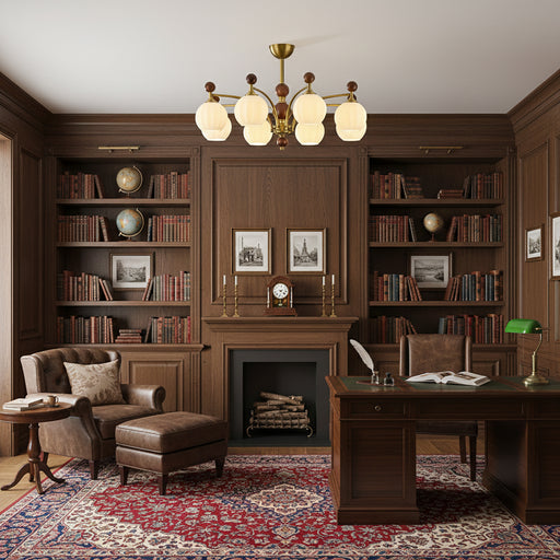 MooiehomeThis chandelier perfectly blends classic style with timeless elegance. The lamp body is crafted from richly textured brass and accented with ash wo...