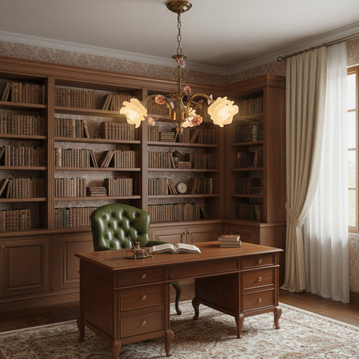 MooiehomeThis Rococo chandelier features a warm brass frame adorned with delicately carved pink roses. The design perfectly blends natural softness with the...