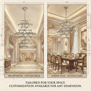 The Crown Summa Chandelier stands as a masterpiece from Mooiehome, seamlessly blending contemporary design with exceptional craftsmanship. Crafted from premium aluminum, the lamp's structure boasts robustness and a sleek metallic finish, exuding a modern yet sophisticated charm. The accompanying glass lampshades emit a soft, even glow, creating a warm and inviting ambiance.