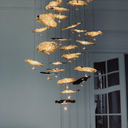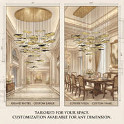 Crafted with metal shards delicately arranged in a moon-shaped design, the Brass Aviary Constellation Chandelier is a stunning addition to any home. Its dome-shaped canopy is intentionally fractured to create an eye-catching feature on your ceiling. This vibrant steel-clad artwork casts light in all directions, making it the perfect accent of celestial beauty and radiance.