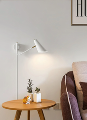 The Apex Plug-in Wall Lamp combines modern minimalism with functional elegance. Its sleek, conical shade and adjustable arm, inspired by mid-century design, provide focused lighting for any space. The contrasting black and brass finish adds a sophisticated touch, making it perfect for contemporary interiors.