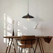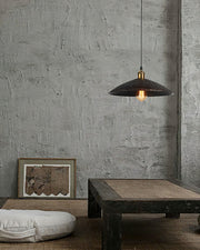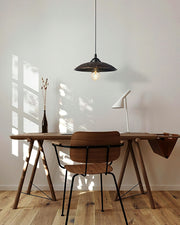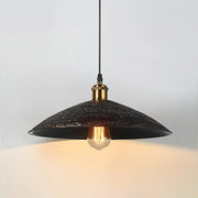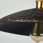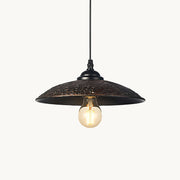 The Canopy Pendant Light showcases a wide, canopy-shaped shade with a textured, hammered finish reminiscent of traditional craftsmanship. The shallow, circular design creates an even spread of light, while the dark patina gives it a bold, vintage flair. Perfect for over kitchen islands or dining tables, this pendant light brings a rustic yet refined industrial touch to any space.