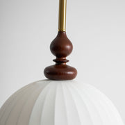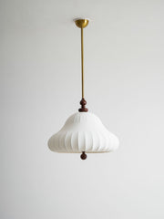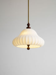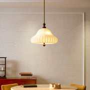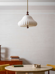 The soft, flowing lines of the lampshade mimic the petals of a blooming flower, creating a serene, inviting ambiance. This design blends traditional aesthetics with modern functionality, making it an ideal centerpiece for a dining room, living area or bedroom.