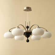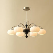 Inspired by the harvest season, the design features elegantly curved metal arms that mimic the gentle swaying of wheat stalks in the breeze. Warm wood accents and shiny metal elements combine to evoke a sense of natural abundance and prosperity. Featuring a beautifully ribbed glass shade that emits a soft, inviting light, this pendant lamp is the perfect addition to any dining room or living space seeking to blend traditional and modern styles.