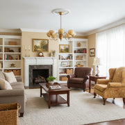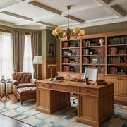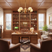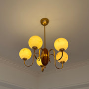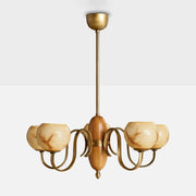 This lamp perfectly blends the essence of mid-century modern style with the refined elegance of contemporary design, resulting in a masterpiece of balanced design. At its heart is a marble-textured glass lampshade, paired with a lamp body combining iron and wood, which exudes natural warmth while creating a striking contrast with industrial aesthetics, complementing each other beautifully.