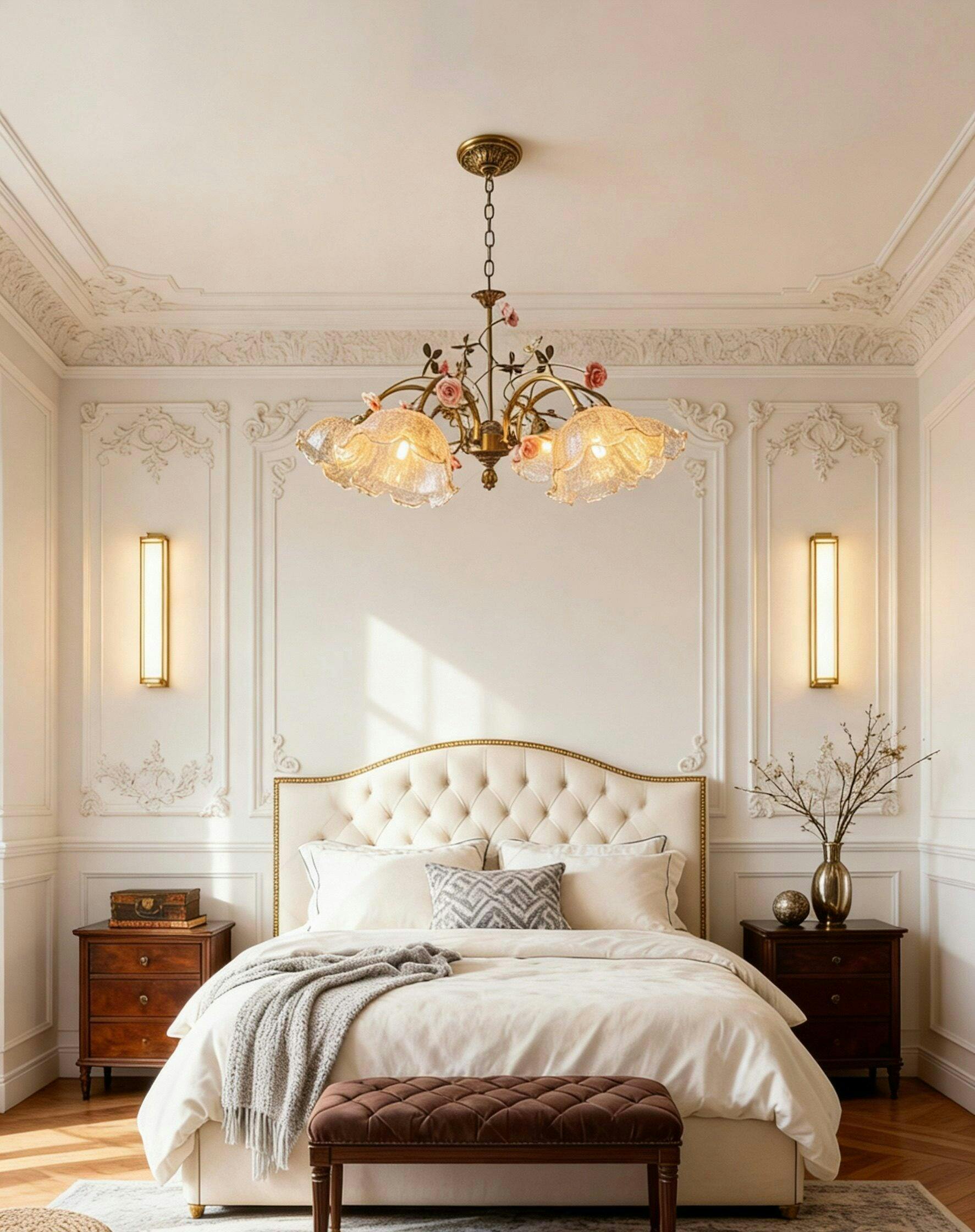 This Victorian Chandelier adds a touch of brightness to your space with its captivating charm. It perfectly blends vintage elegance with romantic flair, making it the ideal accent for any sophisticated interior. The chandelier body is crafted from brass, with meticulously crafted details showcasing classic artistic beauty. Soft pink ceramic roses adorn the design, seemingly blooming around the elegant chandelier. The glass shade emits a warm and gentle glow, creating a cozy and inviting atmosphere in any space.