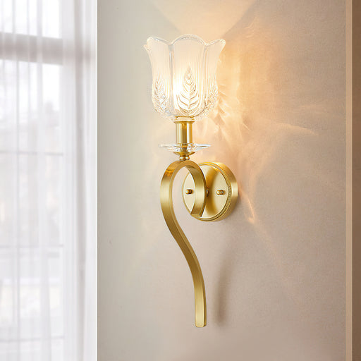 This elegant wall lamp features a delicate floral design paired with a glass lampshade, emitting a soft and warm glow. Its beautifully crafted bras...