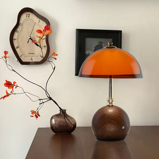 This lamp features a meticulously crafted acrylic lampshade that emits a soft glow. Paired with a richly textured walnut-colored spherical base and...