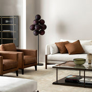 Grape Floor Lamp is an exquisite and unique floor lamp known for its distinctive design and high-quality materials. Its body is made of iron and glass, imparting durability and longevity to the entire lamp fixture. The lamp body is presented in a deep black color, exuding an elegant and mysterious ambiance that seamlessly blends with various interior decor styles.