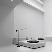 Its minimalist design is also reflected in its component parts: these are reduced to the essential parts required to enable it to perform its function. This lamp has three basic components: an LED light source, two identical circles balanced against each other, and a thin tube connecting them. The different positions of its head and arms create a variety of combinations, meaning the light can be shaped according to your needs. Will shapes and guides, integrating it into the space.