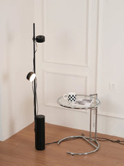 The Post Floor Lamp is an innovative modular lighting design with an archetypal appearance, graphic lines and forward-thinking functionalities. Exploring the utmost flexibility of a magnetic joint, the individual lighting units of the design can be positioned, turned. Use the magnetic cable drops to position the cords on the rod. The Post Floor Lamp comes with two lighting units.