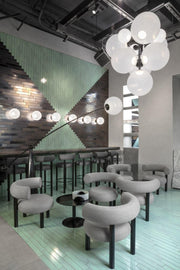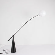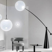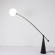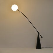 Opal Arc Floor Lamp of translucent globes using our own custom recipe of tinted white Opalescent polycarbonate. Semi-translucent, they maintain an ethereal ghostliness in the daylight and at night form a perfectly illuminated sphere. The Opal range emits a soft, diffused, and flattering light. The softness of the lightbulb shape is achieved through a blow-molded custom combination of opalescent plastic. This process works to achieve an organic form as well as a delicate translucency.