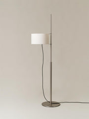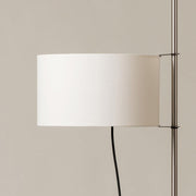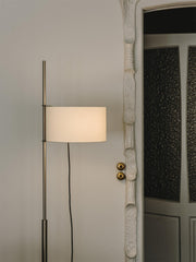 With a structure supported by a circular metal base, the while linen shade of the Santa Cole lamp looks like a sail hoisted on a mast. Whether switched on or off, the Santa Cole manages to add warmth to the space around it.