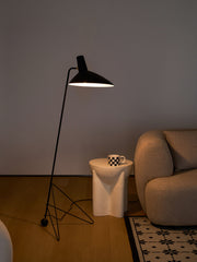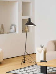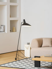 The Svelte Noir Floor Lamp exemplifies the beauty of minimalist design and the strength of metal. Its slender frame is made of high-quality metal and finished in a deep matte black that complements any modern decor. The lamp's unique geometric base serves as both a sturdy support and a visual attraction, inviting onlookers to take a second look.