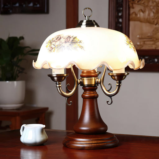 MooiehomeThis table lamp allows you to experience the romance of yesteryear. At its heart is a beautifully crafted glass lampshade adorned with delicate flo...
