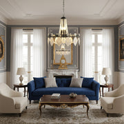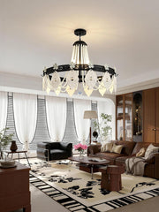 This chandelier perfectly embodies aristocratic elegance, adding exceptional style to your living space. It cleverly combines the charm of black iron with the dazzling luster of pearls; strings of warm, delicate pearls hang down, shimmering under the light, becoming a timeless focal point in any elegant home.
