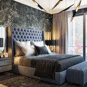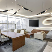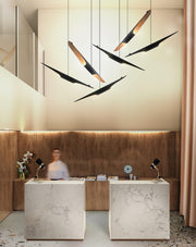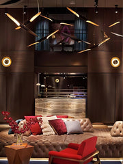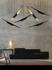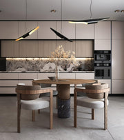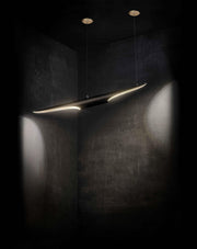 Coltrane is a simple suspended ceiling light, which is handmade in metal. It features a steel cord and canopy at the top, while down below the tube is built out of metal, with a gold powder finish. The shade is also made of steel but it is lacquered a matte gold on the outside and a gold powder paint on the inside.