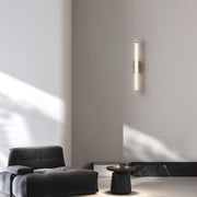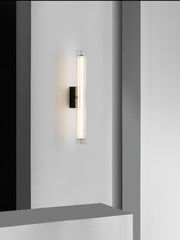 Experience the elegance and energy of the Macie Wall Lamp. Its integrated LED is covered with a white tube and textured glass, creating a clean and refined style. The smooth white glass contrasts with the textured glass, adding an extra touch of sophistication.