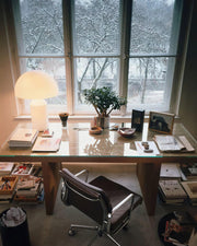 The Atollo Metal Table Lamp is a modern minimalist masterpiece. Its metal construction exudes timeless durability, while its three essential shapes offer a perfect balance of form and function. Enjoy its warm ambient glow, which casts a seductive light up the dome shade and down its arching sides.