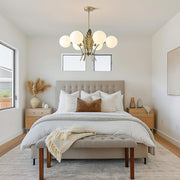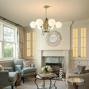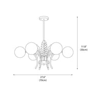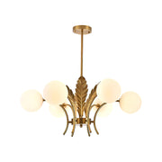 Elevate your interior with the graceful charm of the Bokt Glass Chandelier from Mooiehome. Meticulously crafted from high-quality iron and glass, this elegant fixture blends timeless sophistication with contemporary design. The chandelier features a radiant gold-toned iron frame adorned with sculptural leaf motifs, supporting six round glass globes that cast a soft, ambient glow throughout the space.Perfect for dining rooms, living rooms, or grand entryways, the Bokt Glass Chandelier brings a refined statement to any setting. Its harmonious balance of form and function makes it an ideal centerpiece for homes that appreciate both classic detail and modern elegance.