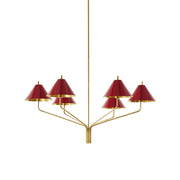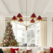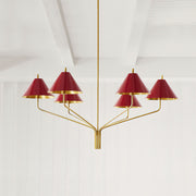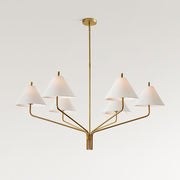 Graceful geometry meets timeless elegance in the Orvella Chandelier. Featuring a sculptural iron frame finished in warm gold tones, its sleek arms extend outward in a perfectly balanced composition. Each arm is topped with a tapered fabric shade, casting a soft, diffused glow ideal for dining rooms, living areas, or high-ceilinged spaces. The Orvella blends modern lines with classic warmth, offering a refined statement that elevates any interior with effortless sophistication.