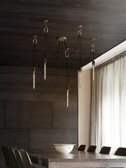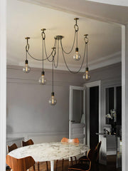 Decorate your room and show your modern and industrial atmosphere with this Industrial Spider Chandelier. Use of different types and finishes of bulb can dramatically alter the mood and atmosphere providing bright light in working areas and soft tones in areas of relaxation. Each wire is 59 inch, can adjusted droop length and modeling by DIY.