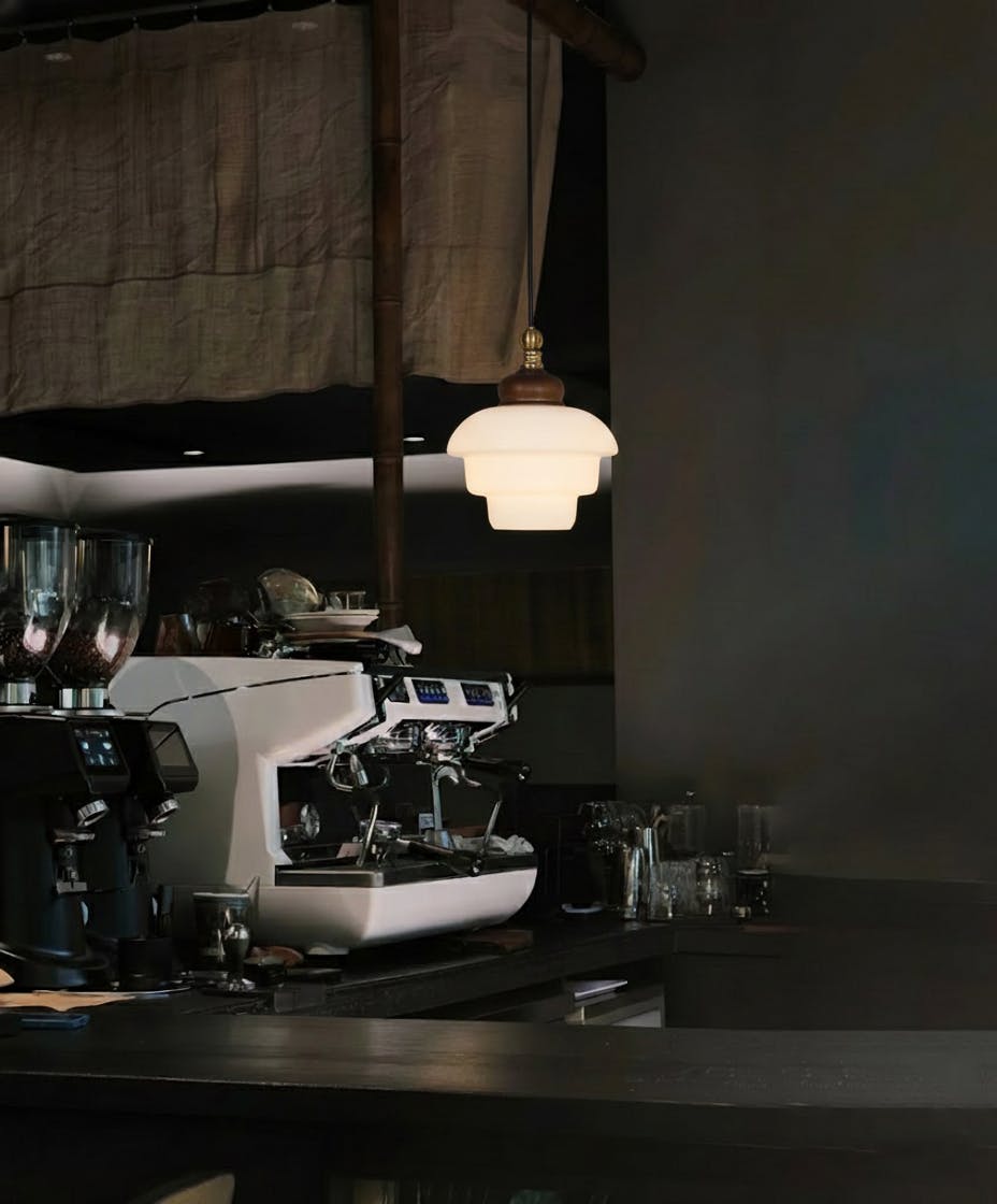 The Pinecone Pendant Light is inspired by pine cones. Its unique layered design makes the lampshade look like a delicate pine cone hanging in the air. The white glass lampshade creates a soft light and exudes a warm atmosphere, while the wood and brass details on the top add a natural and vintage charm to the overall design. Whether it is hung above the dining table or in the center of the living room, the Pinecone Pendant Light can bring a warm and unique natural atmosphere to the space, making it the perfect choice for those who love nature-style homes.