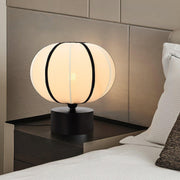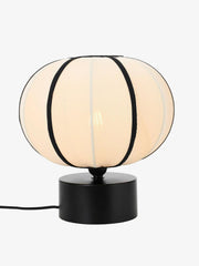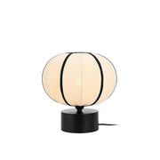 Illuminate any space with the sleek and modern Ellos Table Lamp. The cylindrical metal base features a matte black finish, while the textile shade is adorned with black, decorative bands. Effortlessly blend style and function with this elegant addition to your home.