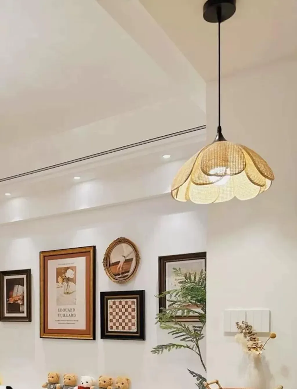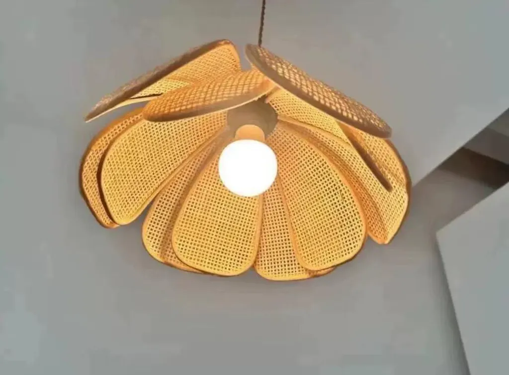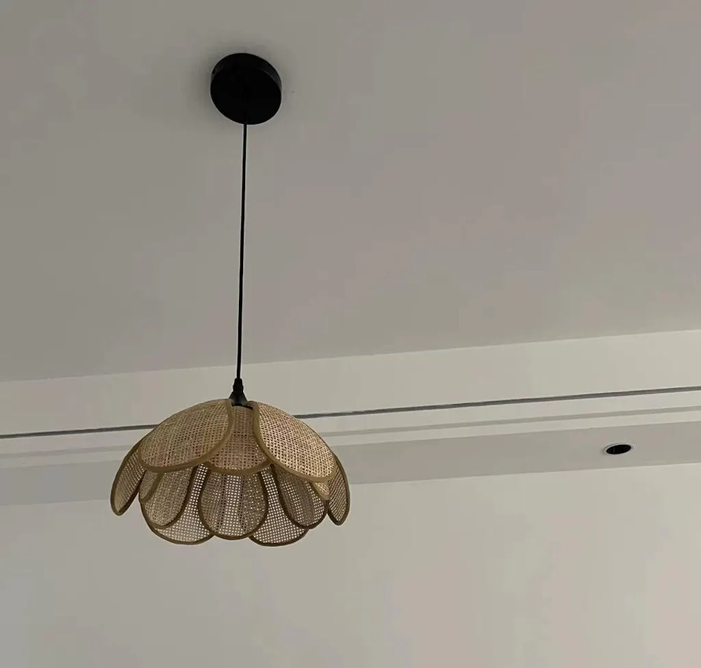 Introducing the Bloom Rattan Pendant Lamp, a stunning lighting fixture that captures the delicate beauty of blooming flowers. Crafted with a blend of metal durability and artisanal rattan charm, each shade is meticulously designed to resemble flower petals. The warm golden tone of the woven vines creates a cozy ambiance when lit.
