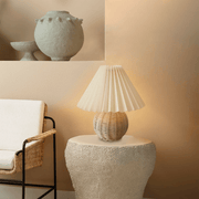 Enrich your home decor with our Rattan Pleated Table lamp. Its modern and stylish design adds an elegant and fashionable touch to any room. Recommended for indoor use in living rooms, dining rooms, and bedrooms. Elevate your space with this beautiful lamp.
