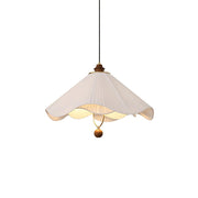 The Scallop Edge Pendant Light features a beautifully pleated fabric shade with a scalloped edge, reminiscent of vintage parasols. The brass and wood accents enhance its timeless appeal, making it a charming addition to any space.
