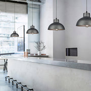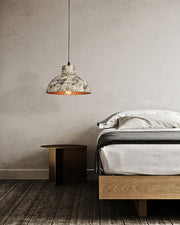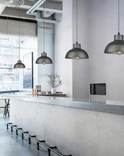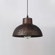 The Crosby Metal Pendant Light is a striking fusion of industrial charm and rustic texture. Crafted from durable iron and steel, its weathered, distressed finish gives it a vintage warehouse appeal that instantly adds character to any interior. The dome-shaped shade casts a focused downward light, ideal for kitchen islands, dining areas, or loft-style spaces. Inside, the warm-toned metallic interior enhances the glow of the bulb, creating a cozy yet edgy ambiance. With its raw, utilitarian aesthetic, this pendant light is perfect for those seeking a bold, retro-industrial statement piece.