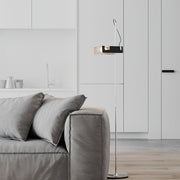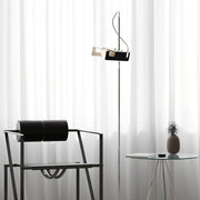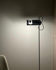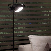 Spider Floor Lamp with stove-enameled sheet metal reflector purposely designed to take a special horizontal spot light bulb. A plastic joint allows the reflector to tilt.