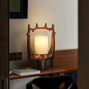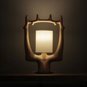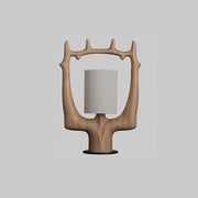Elevate your bedside or reading nook with the sculptural charm of the Antler Ring Table Lamp from Mooiehome. Designed to resemble a stylized antler crown, this unique piece combines rustic influence with modern elegance. The bold metal frame curves upward in a striking ring-like silhouette, cradling a warm fabric shade that softly diffuses light for a cozy, inviting glow.Resting on a natural wooden base, the lamp creates a harmonious balance between strength and serenity—perfect for adding character to bedrooms, studies, or lodge-inspired interiors.