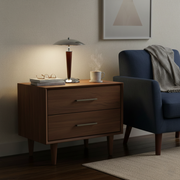 The Volos Dome Table Lamp by Mooiehome exudes retro-futuristic charm with a modern twist. Its sleek metal dome shade casts a focused downward glow, ideal for task lighting or creating a cozy reading corner. The rich wood column adds warmth and contrast to the polished metal base and cap, while a subtle glass diffuser softens the light for added comfort. With its sculptural silhouette and timeless palette, the Volos Lamp is a standout piece for desks, nightstands, or accent tables—where design meets function in the most refined way.