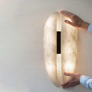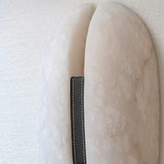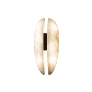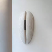 The Luna Alabaster Wall Lamp by Mooiehome is a sculptural statement in modern lighting. Featuring two gently curved alabaster shells held in place , it creates a striking visual with balanced symmetry. The natural veining of the alabaster softens the light, casting a warm, ambient glow that adds depth and texture to any room. A refined fusion of natural material and contemporary design.
