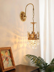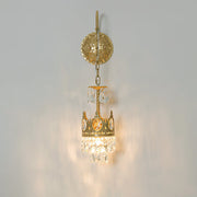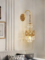 This imperial wall lamp's magnificent radiance will elevate the style of your home. This exquisite piece is more than just lighting; it's a symbol of timeless luxury and refined elegance. Crafted from high-quality brass, its captivating design showcases the grandeur of classic European style. Adorned with finely carved crystal pendants, it casts a warm glow upon your space.