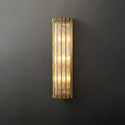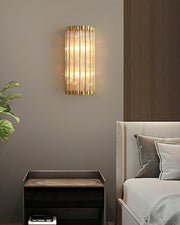 The gold trim and carved glass complement each other to create a modern and luxurious atmosphere. This wall lamp perfectly combines natural elements with modern design through simple lines and light and shadow effects, suitable for a variety of high-end interior spaces.