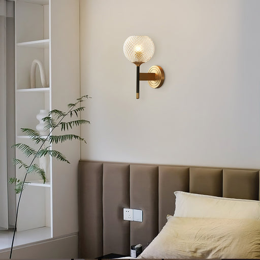 mooiehomeThe Staggered Glass Sconce is an elegant addition to any bedroom. Its contemporary design features a glass globe shade, metal hardware, and a minim...