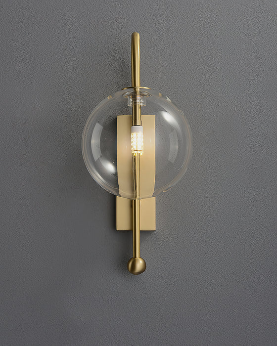 Refined elegance takes shape in the Aurelio Wall Light. Crafted from premium copper and clear glass, this fixture features a graceful curved arm that supports a transparent globe shade, creating a timeless silhouette with modern appeal. The warm brass finish adds a touch of luxury, while the exposed bulb design casts a soft, ambient glow. Perfect for living rooms, hallways, or bedside settings, the Aurelio Wall Light delivers both decorative charm and functional lighting.
