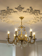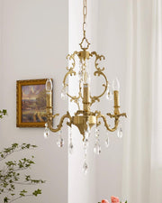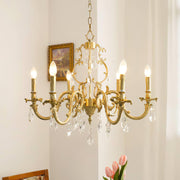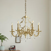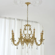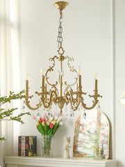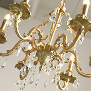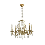 The Barret Crystal Chandelier brings timeless elegance to any home. Featuring a fountain of shimmering and clear K9 crystals, each gracefully set in antique gold arms, it adds a touch of royalty to any traditional interior.